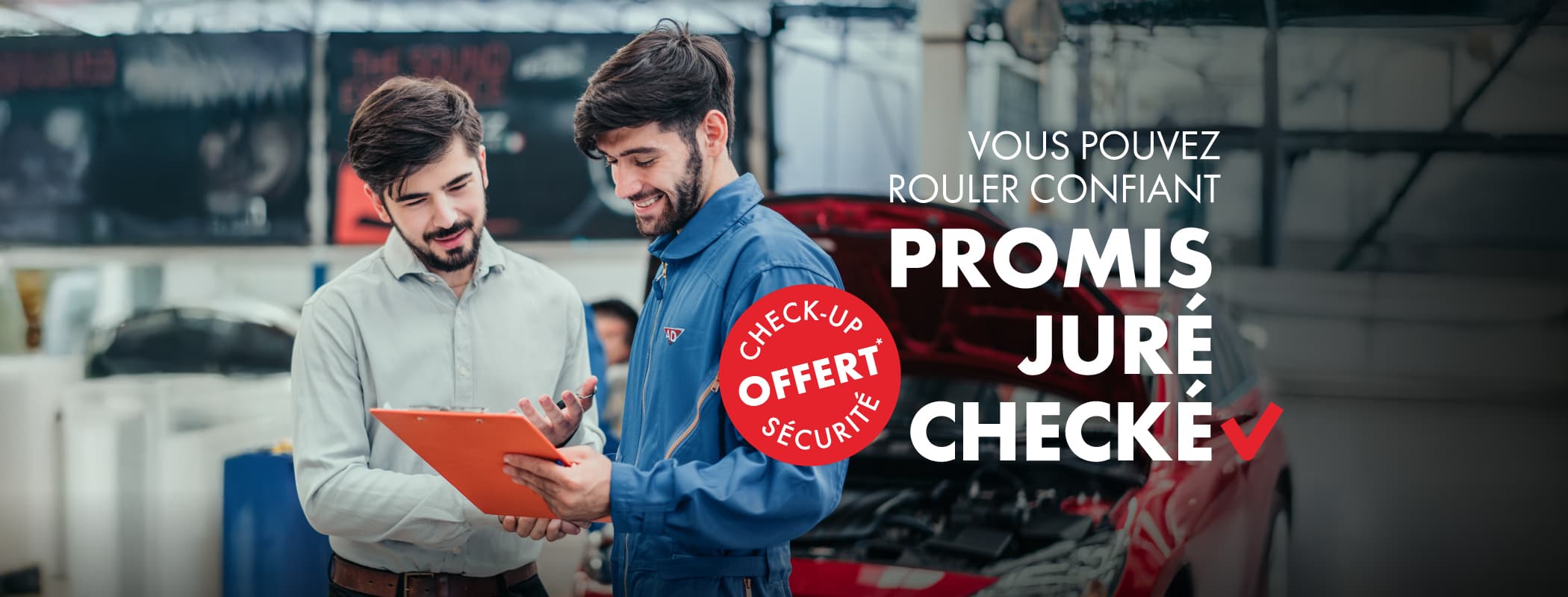 Du 1er mars au 30 avril 2026, les garages AD vous offrent un check‑up sécurité visuel gratuit pour toute intervention payante réalisée dans un garage participant.